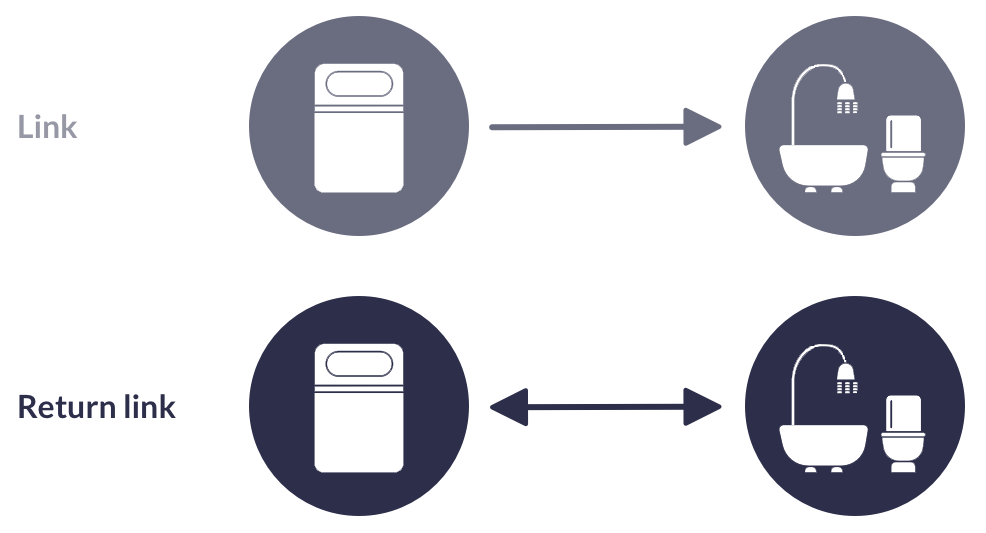 For example: If you have created a link from the bedroom to the bathroom, the return link is from the hallway back to the kitchen.